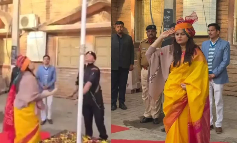 IAS Tina Dabi Republic Day 2026 Viral Video: अक्सर सुर्खियों में बने रहने वाली राजस्थान के बाड़मेर की जिलाधिकारी और IAS टॉपर टीना डाबी एक बार फिर चर्चाओं में है। सोशल मीडिया पर उनकी अपने कार्यालय में ध्यजारोहण का एक वीडियो वायरल हो रहा है।