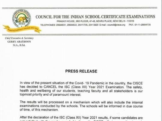 देहरादून : सीबीएसई के बाद ICSE बोर्ड ने भी 12वीं की परीक्षा रद्द कर दी है। काउंसिल फॉर इंडियन स्कूल सर्टिफिकेट ,आईसीएसई बोर्ड ने कहा कि आईसीएसई बोर्ड की 12वीं कक्षाओं की परीक्षाएं कैंसल कर दी गई हैं, परीक्षाएं रद्द करने के बाद अंक देने के लिए मूल्यांकन प्रक्रिया के मानदंडों का जल्द फैसला होगा। आईएससी छात्रों को परीक्षा में बैठने के लिए बाद एक मौका दिया जाएगा।
