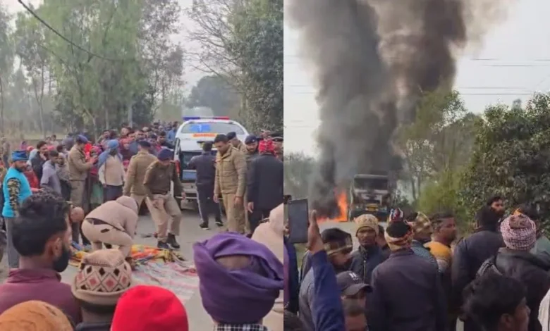खनन से लदे डंपर ने बाइक सवार को कुचला, दर्दनाक मौत, भीड़ ने वाहन को किया आग के हवाले