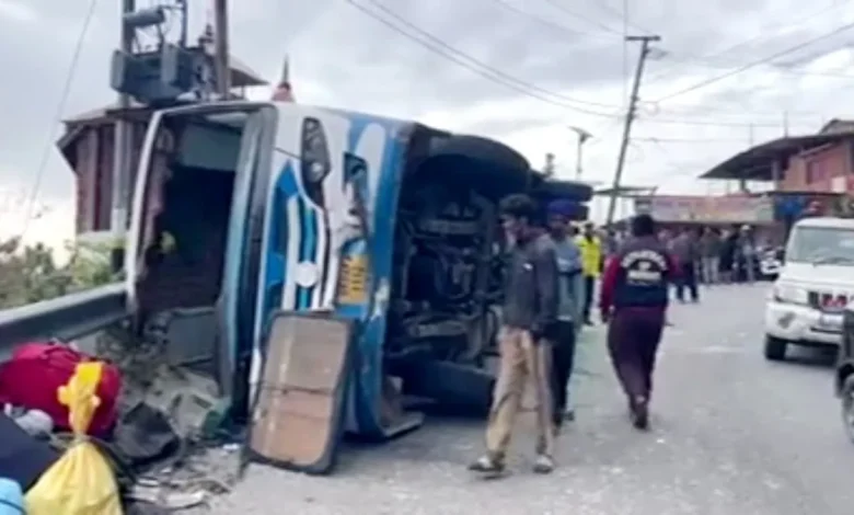 सड़क हादसा!, यात्रियों से भरी तेज रफ्तार बस पलटी Bus Accident In Nainital