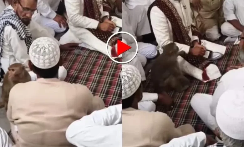 निकाह की महफिल में बंदर की एंट्री! दूल्हे के पास पहुंचकर की ये मजेदार हरकत, Video