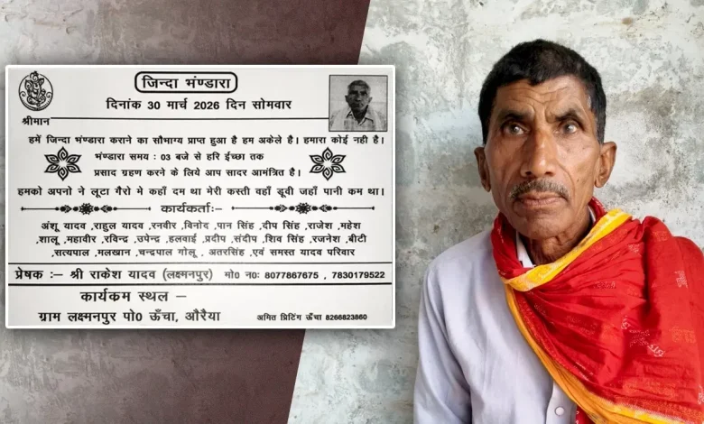 उत्तर प्रदेश के औरैया से एक भावुक कर देने वाली खबर सामने आई है। यहां एक 65 साल के राकेश यादव ने अपने जिंद रहते ही अपनी तेरहवी का भंडारा करा दिया। मजेदार वाली बात ये है कि इसके लिए उन्होंने 1900 लोगों को निमंत्रण भेजा। ये कुछ लोगों को जहां भावुक कर रही है। तो वहीं कहीं ना कहीं इसने समाज को रिश्तों को लेकर सोचने पर मजबूर कर दिया है।