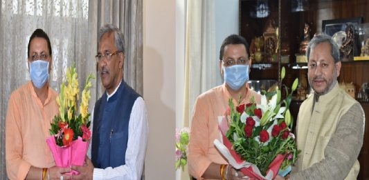 उत्तराखंड: पूर्व CM त्रिवेंद्र और तीरथ सिंह रावत से मिले पुष्कर सिंह धामी