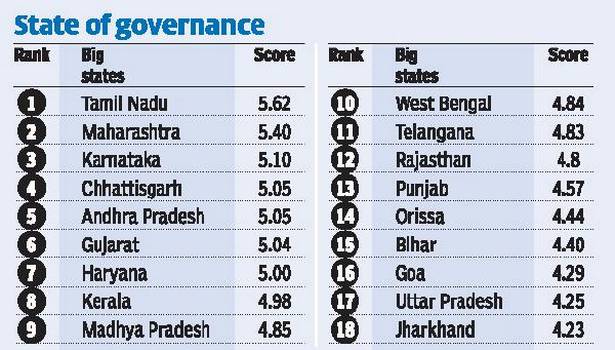 सुशासन के मामले में तमिलनाडु ने देश के बाकी राज्यों को पछाड़ते हुए पहला स्थान हासिल किया है जबकि महाराष्ट्र और कर्नाटक इस मामले में क्रमश दूसरे व तीसरे स्थान पर रहे हैं। उत्तराखंड का डब्बा गोल दिखा. लेकिन पहाड़ी राज्यों की बात करें तो उत्तराखंड ने अपनी जगह बनाई है लेकिन ओवरऑल देखा जाए तो उत्तराखंड काफी पीछे है.